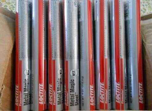 鋼粉的棒狀環(huán)氧膠,用手揉勻后填入間隙或孔洞即可堵漏,適用時(shí)間3分鐘,初固 時(shí)間為10分鐘。固化后可以進(jìn)行鉆孔、攻絲、涂油漆。適用于水箱及管道泄露的緊 急密封修補(bǔ),可用于鋼鐵材料壓力低于0.3MPa工況下堵漏。能夠?qū)缚p進(jìn)行平填; 對鑄件的小開裂進(jìn)行修補(bǔ)。對過大的螺栓孔進(jìn)行填充。