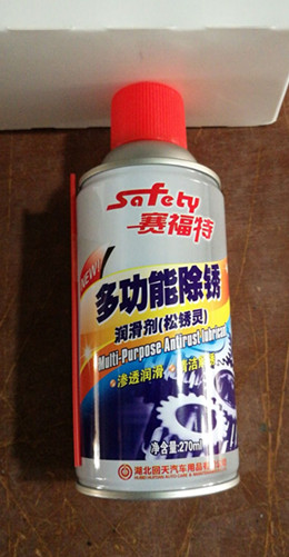 賽福特牌多功能除銹潤滑劑是采用美國配方研制而成的環(huán)保型產(chǎn)品。本品具有滲透潤滑、清潔解銹、清除濕氣、消除噪音、抑/制腐蝕及金屬防銹保護(hù)等性能。良好的滲透解銹潤滑效果,可迅速松拆因銹蝕而卡住的螺栓、機(jī)械軸及生產(chǎn)線其它機(jī)部件;因其快捷、有效的用途而已成為汽車護(hù)理、修理廠等必/備佳品。綠色產(chǎn)品,可靠,全新無鉛、無氯、無氟里昂綠色環(huán)保配方,對(duì)機(jī)部件無任何影響,是綠色除銹松動(dòng)潤滑劑。